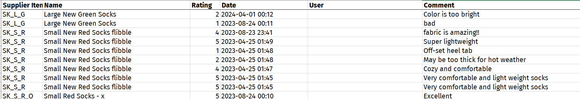 The export report as an XLSX file:
